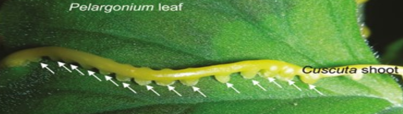 Los parásitos de tallo necesitan establecer puntos de contacto con su huésped, para formar un haustorio, estructura que utilizarán para obtener los nutrientes de la planta. Primero tienen que encontrar a su huésped, cosa que no es sencilla cuando no se poseen ojos, pero plantas parásitas como la cuscuta son capaces de localizar a sus huéspedes usando los compuestos volátiles que producen. Este sentido del “olfato” las guía hasta sus próximas víctimas.